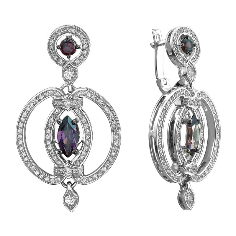 Серьги из белого золота 585 пробы с родолитами и бриллиантами 01С6271098-5