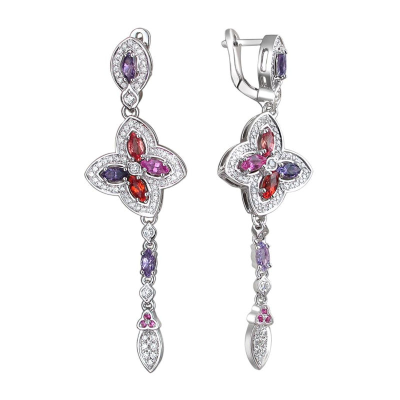 Серьги из белого золота 585 пробы с сапфирами, аметистами и бриллиантами 01С6291068-1