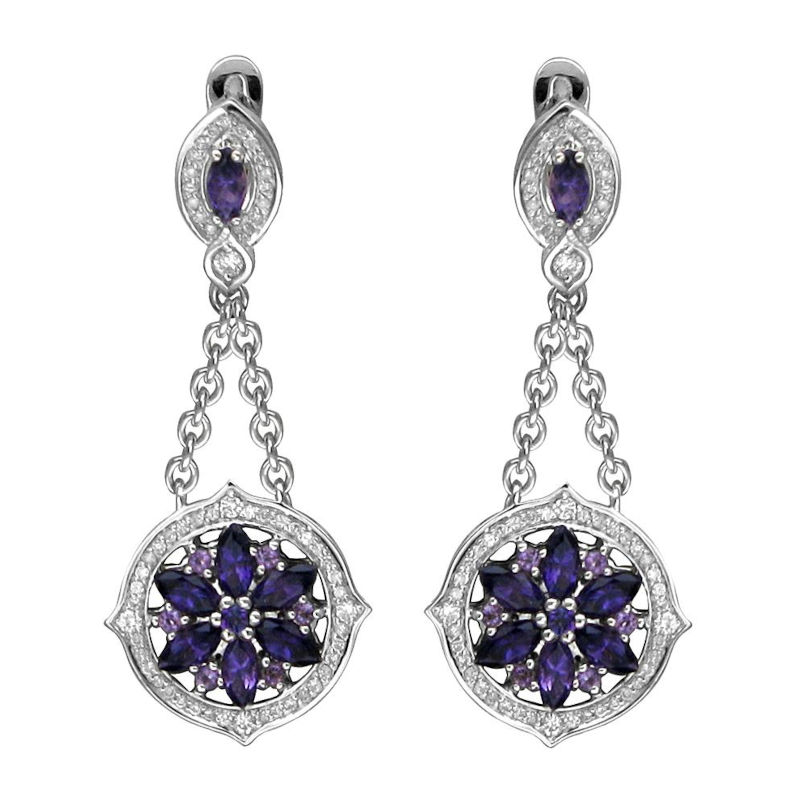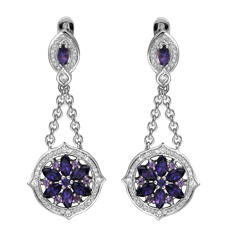 Серьги из белого золота 585 пробы с аметистами и бриллиантами 01С6291069-4