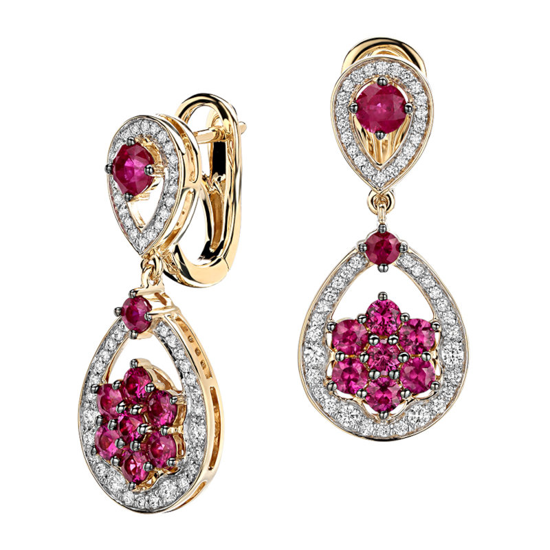 Серьги из желтого золота 585 пробы с рубинами и бриллиантами 01С6312631-2