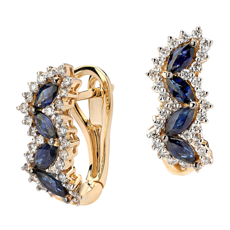 Серьги из желтого золота 585 пробы с сапфирами и бриллиантами 01С6313217-2