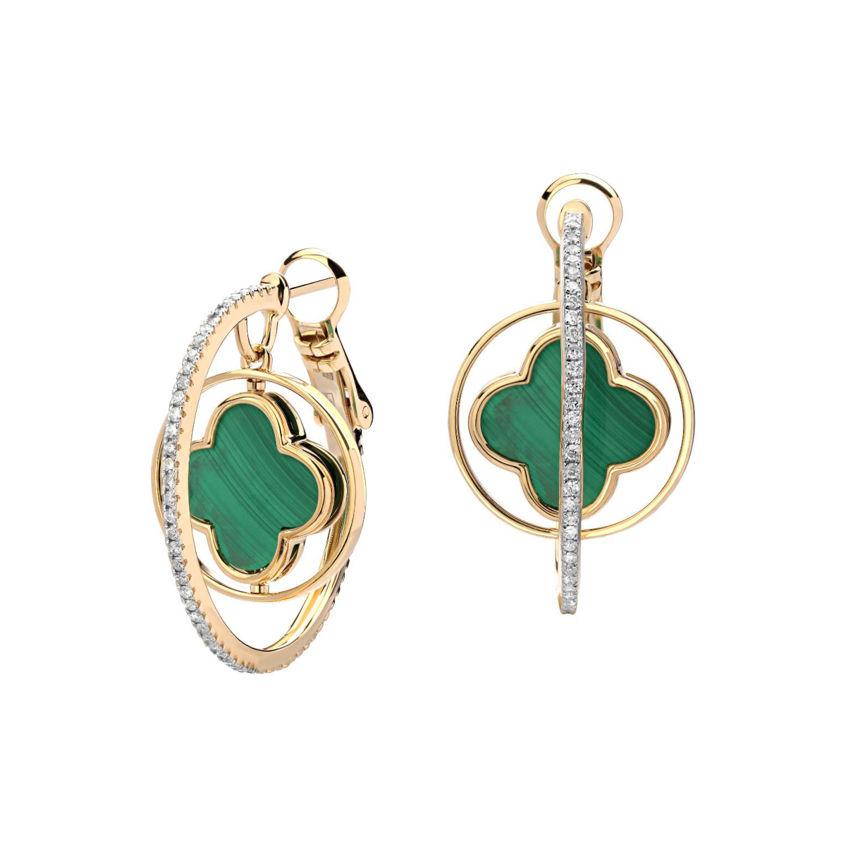 Серьги из желтого золота 585 пробы с малахитами и бриллиантами 01С6313310-1