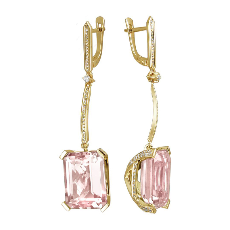 Серьги из желтого золота 585 пробы с кварцем и бриллиантами 01С6331035-5