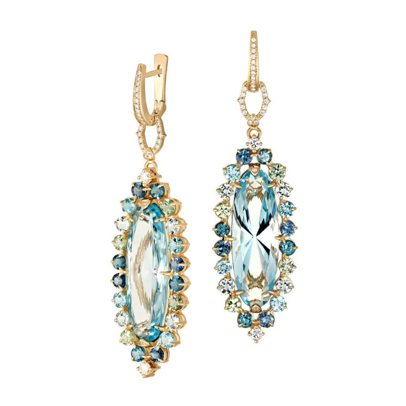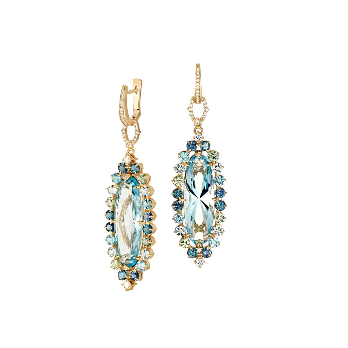Серьги из желтого золота 585 пробы с топазами, сапфирами и бриллиантами 01С636939L-1