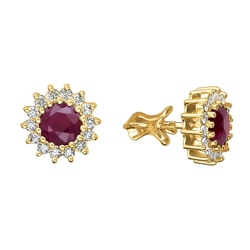 Серьги из желтого золота 750 пробы с рубинами и бриллиантами 01С643277-6