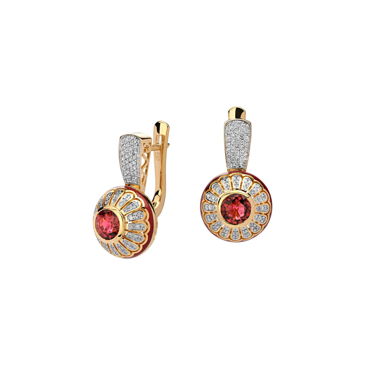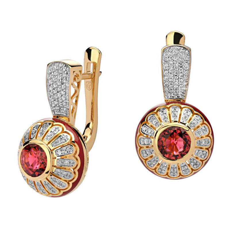 Серьги из желтого золота 750 пробы с турмалинами, эмалью и бриллиантами 01С646673Э-7