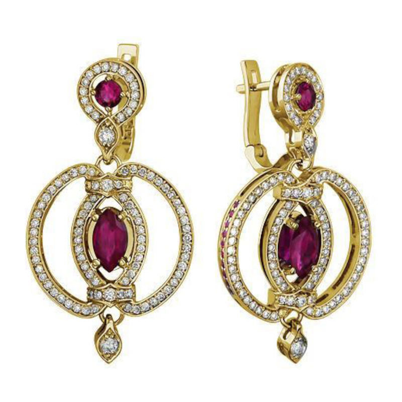 Серьги из желтого золота 750 пробы с рубинами и бриллиантами 01С647988-1
