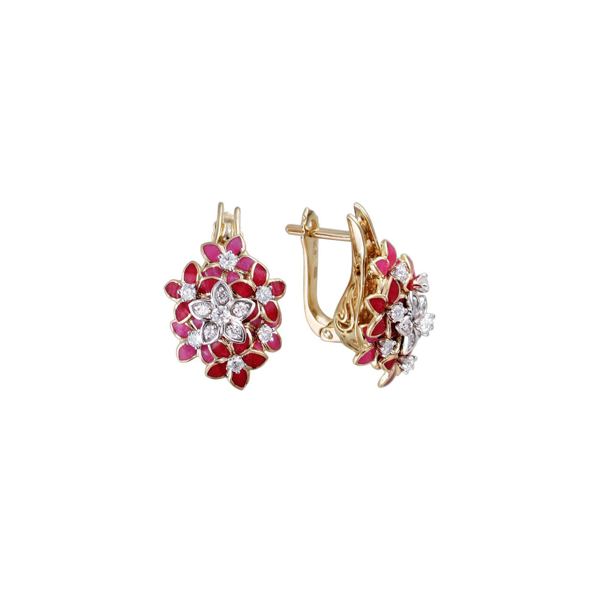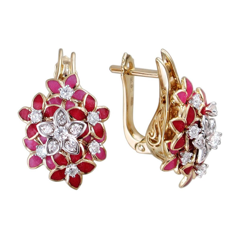 Серьги из комбинированного золота 585 пробы с бриллиантами и эмалью 01С665723ЭLЖ