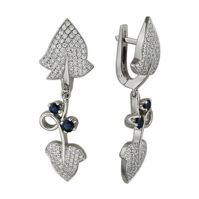 Серьги из белого золота 750 пробы с сапфирами и бриллиантами 01С673382-1