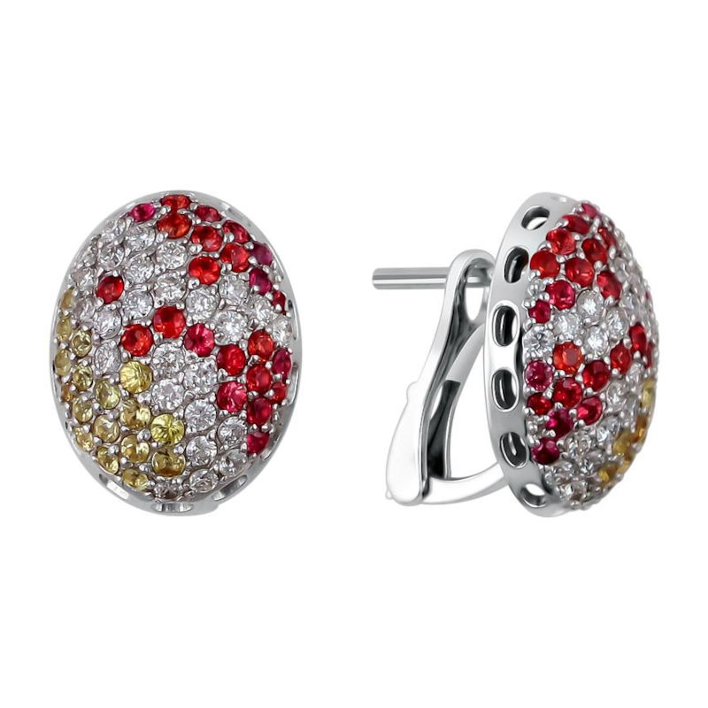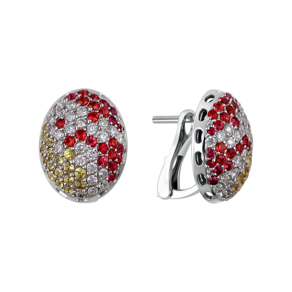 Серьги из белого золота 750 пробы с сапфирами и бриллиантами 01С675905-1