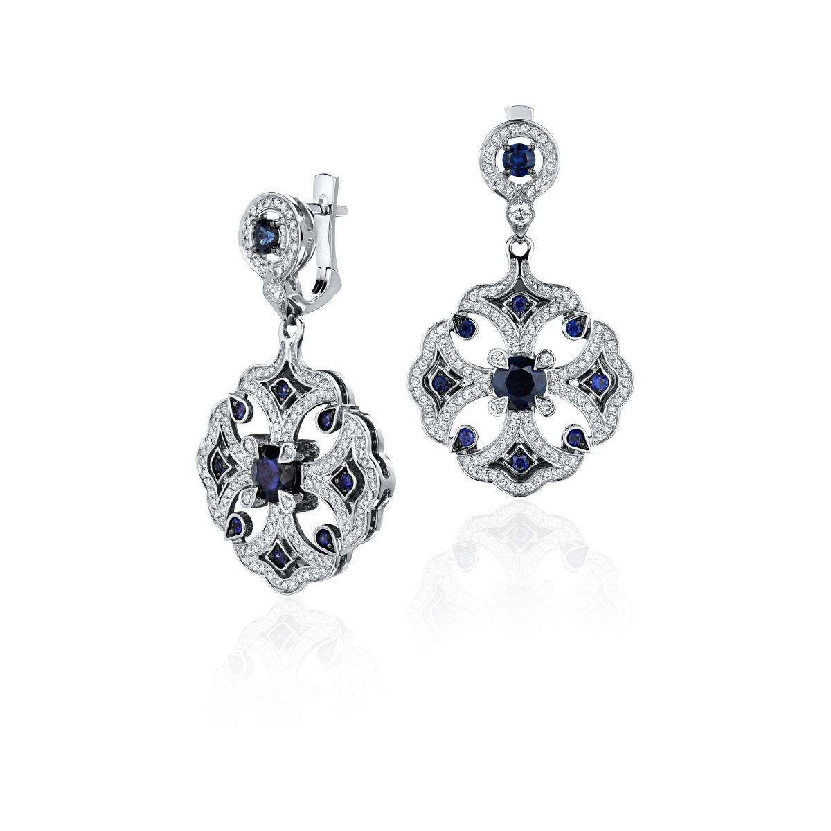 Серьги из белого золота 750 пробы с сапфирами и бриллиантами 01С677977-1