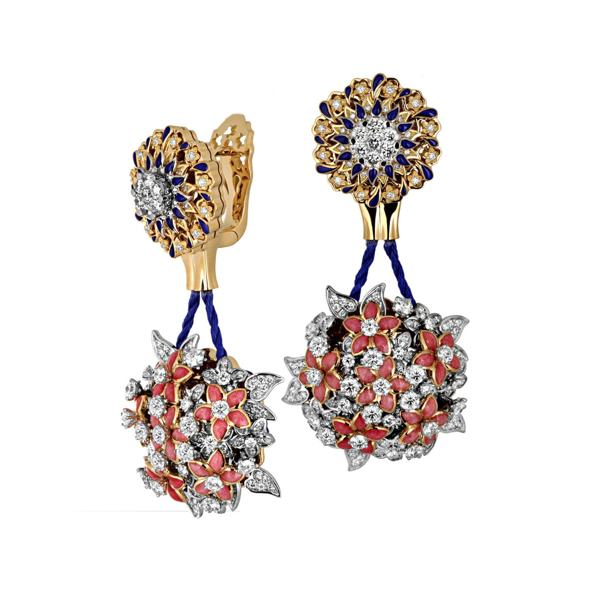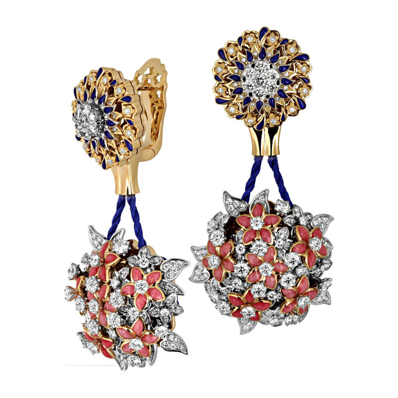Серьги из комбинированного золота 750 пробы с бриллиантами и эмалью 01С684635ЭZL