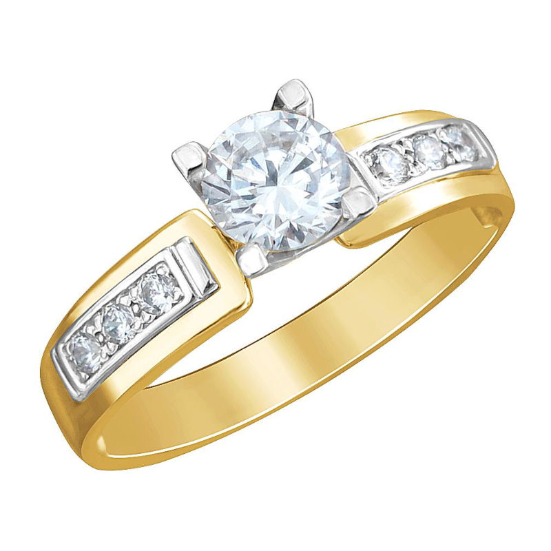 Кольцо из комбинированного золота 585 пробы с фианитами 01К1612814Ж