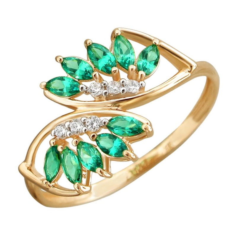 Кольцо из красного золота 585 пробы с шпинелью и фианитами 01К2112097Р-2
