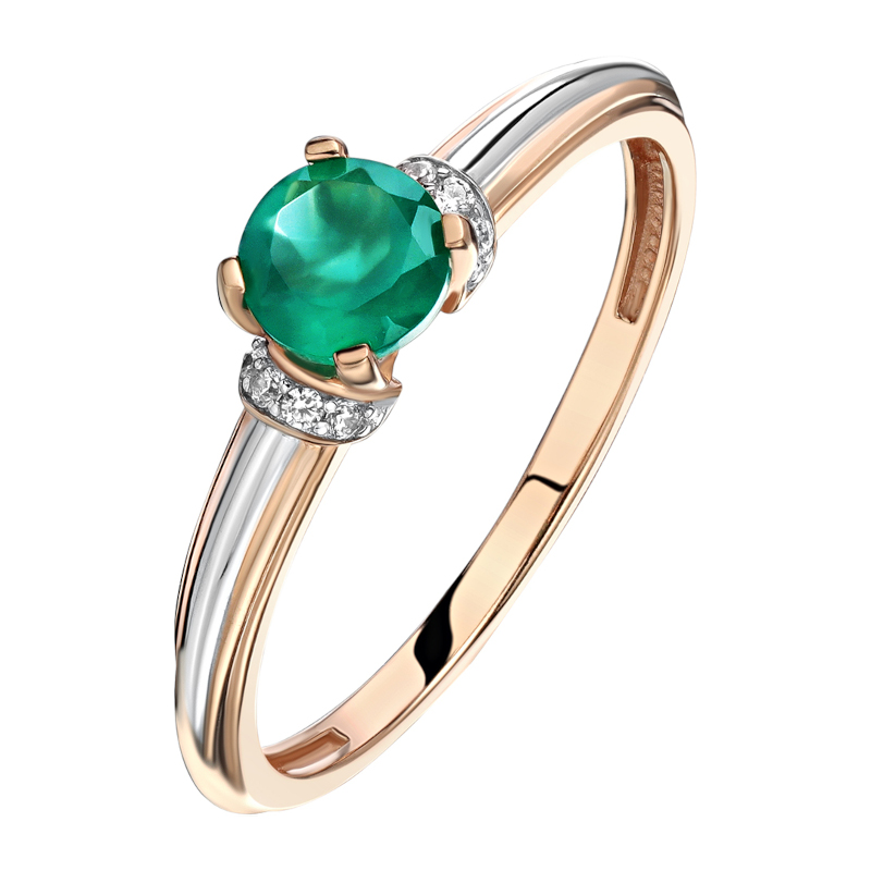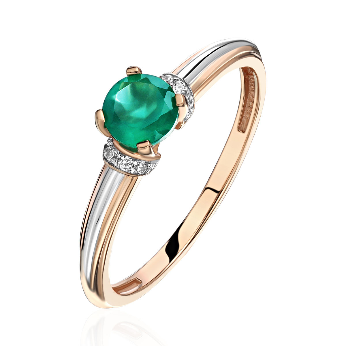 Кольцо из красного золота 585 пробы с агатом и фианитами 01К4115276Р-1