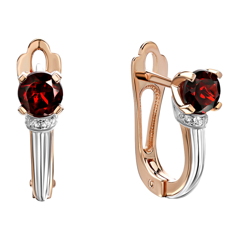 Серьги из красного золота 585 пробы с гранатами и фианитами 01С3115276Р-2