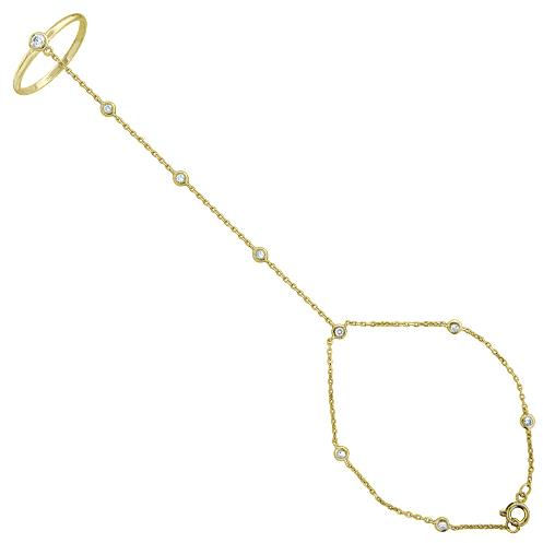 Браслет панье с кольцом из желтого золота 585 пробы с бриллиантами 01Б631640