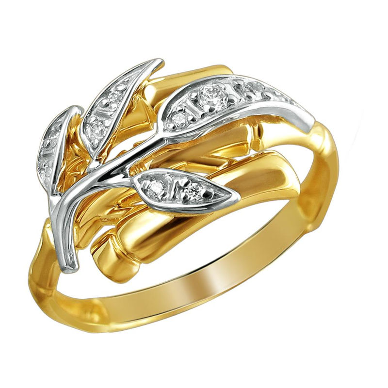 Кольцо из комбинированного золота 585 пробы с фианитами 01К1612823Ж