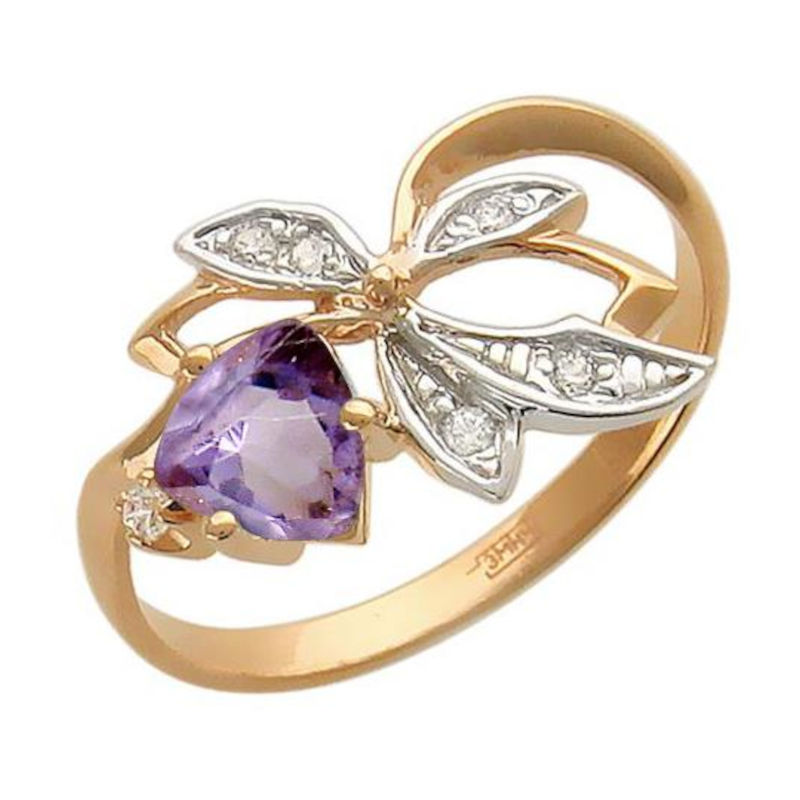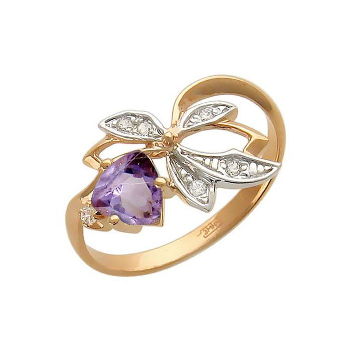 Кольцо из красного золота 585 пробы с аметистом и фианитами 01К312383-3