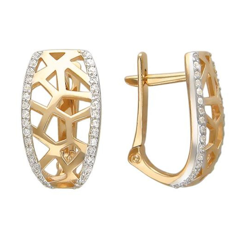 Серьги из красного золота 585 пробы с фианитами 01С116641