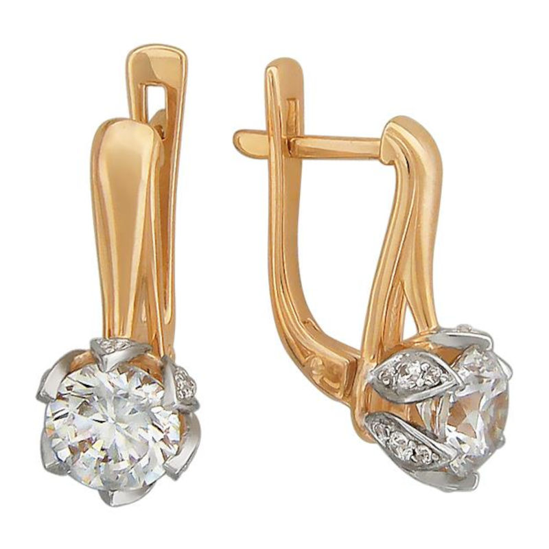 Серьги из красного золота 585 пробы с фианитами 01С119399