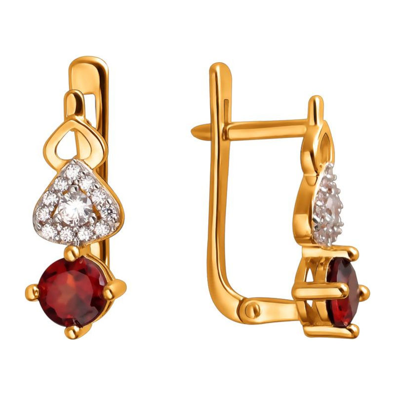 Серьги из красного золота 585 пробы с фианитами и гранатами 01С3112065-3