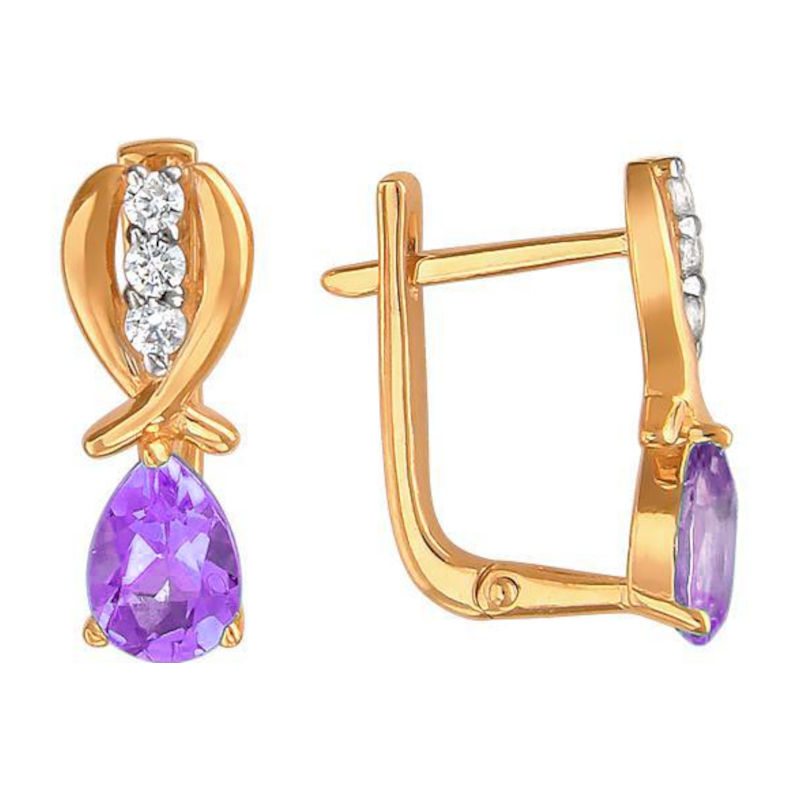 Серьги из красного золота 585 пробы с фианитами и аметистами 01С3112070-2