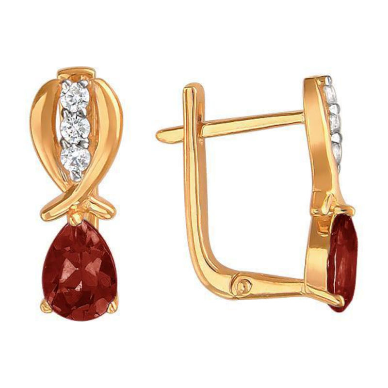 Серьги из красного золота 585 пробы с фианитами и гранатами 01С3112070-3