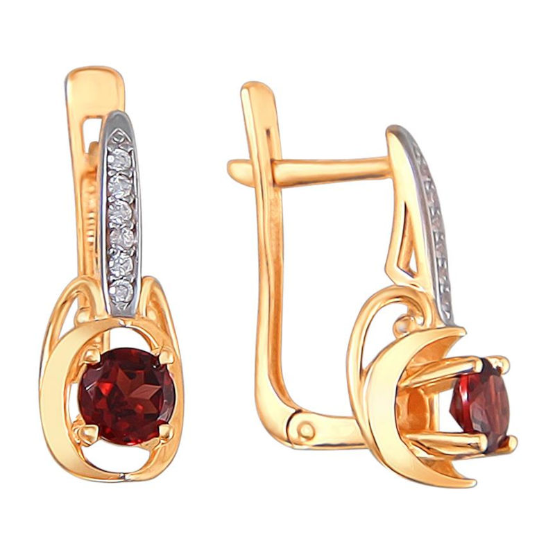 Серьги из красного золота 585 пробы с фианитами и гранатами 01С3112071-3