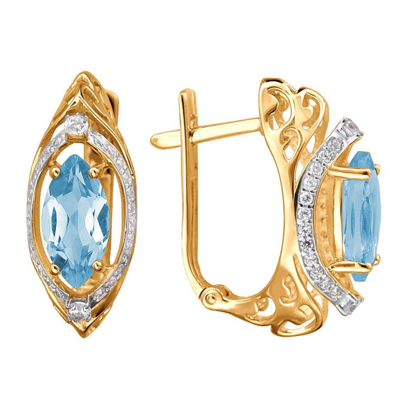 Серьги из красного золота 585 пробы с топазами и фианитами 01С3113273Р-1