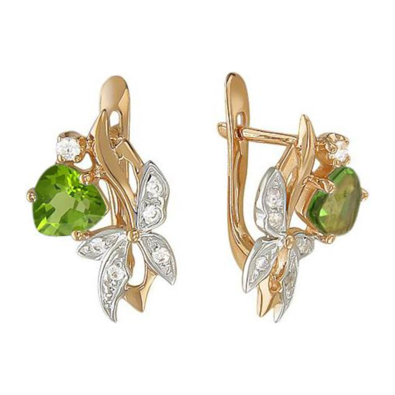 Серьги из красного золота 585 пробы с фианитами и аметистами 01С312383-3