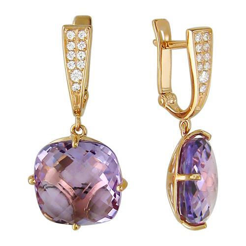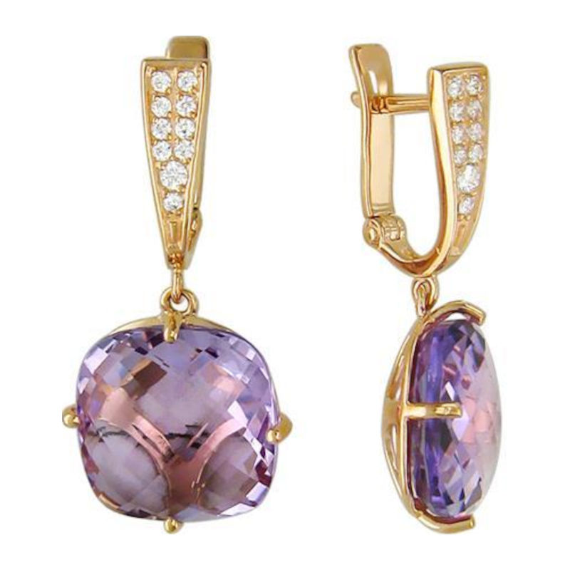 Серьги из красного золота 585 пробы с фианитами и аметистами 01С315078-2