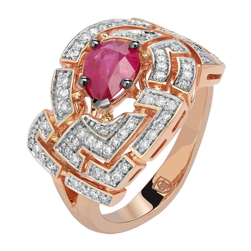 Кольцо из красного золота 585 пробы с рубином и бриллиантами 01К6113136-1