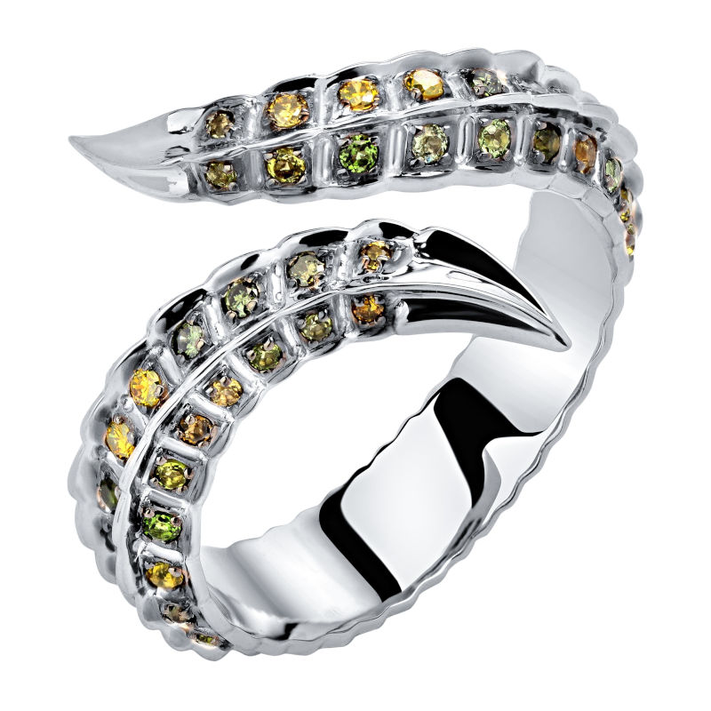 Кольцо из белого золота 585 пробы с турмалинами и бриллиантами 01К6214436-1