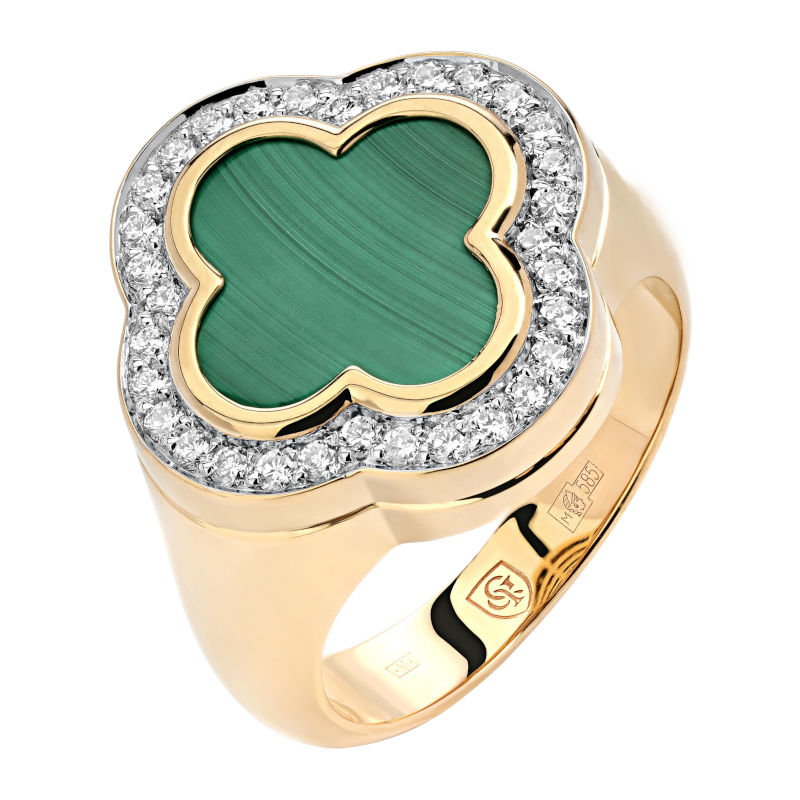 Кольцо из желтого золота 585 пробы с малахитом и бриллиантами 01К63134411-1