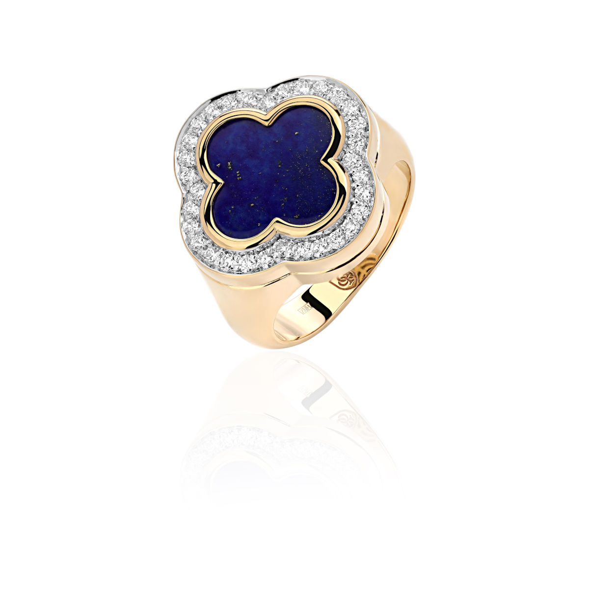 Кольцо из желтого золота 585 пробы с лазуритом и бриллиантами 01К6313311-2