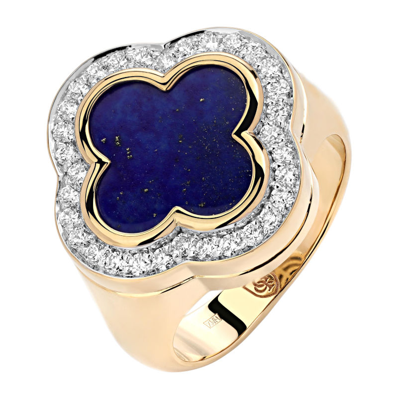 Кольцо из желтого золота 585 пробы с лазуритом и бриллиантами 01К63134411-2