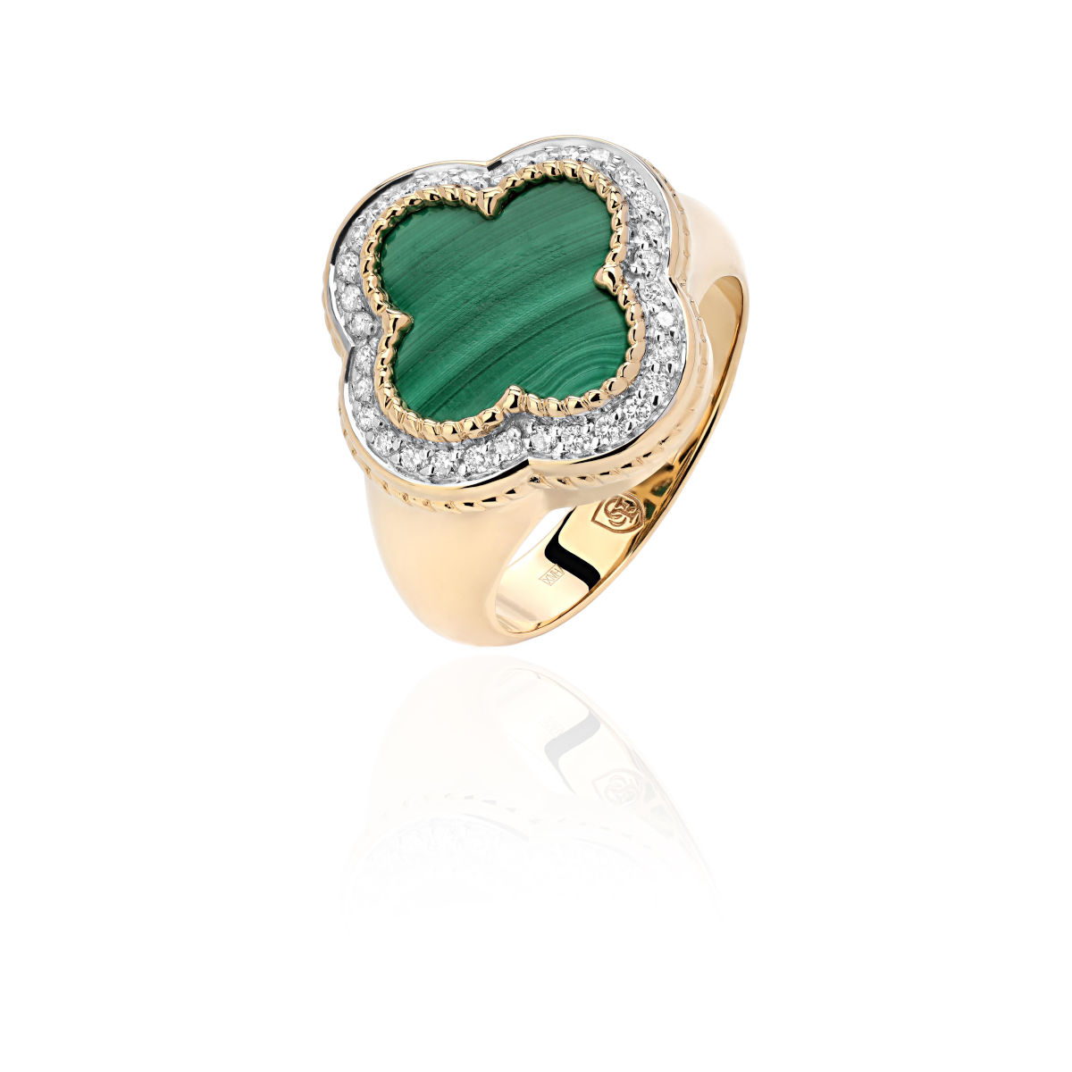 Кольцо из желтого золота 585 пробы с малахитом и бриллиантами 01К6313313-1