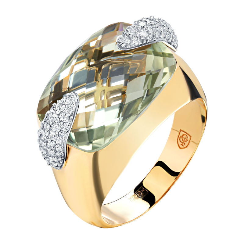Кольцо из комбинированного золота 585 пробы с празиолитом и бриллиантами 01К6615202Ж-2