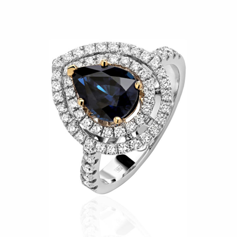 Кольцо из комбинированного золота 750 пробы с сапфиром и бриллиантами 01К6813564-2