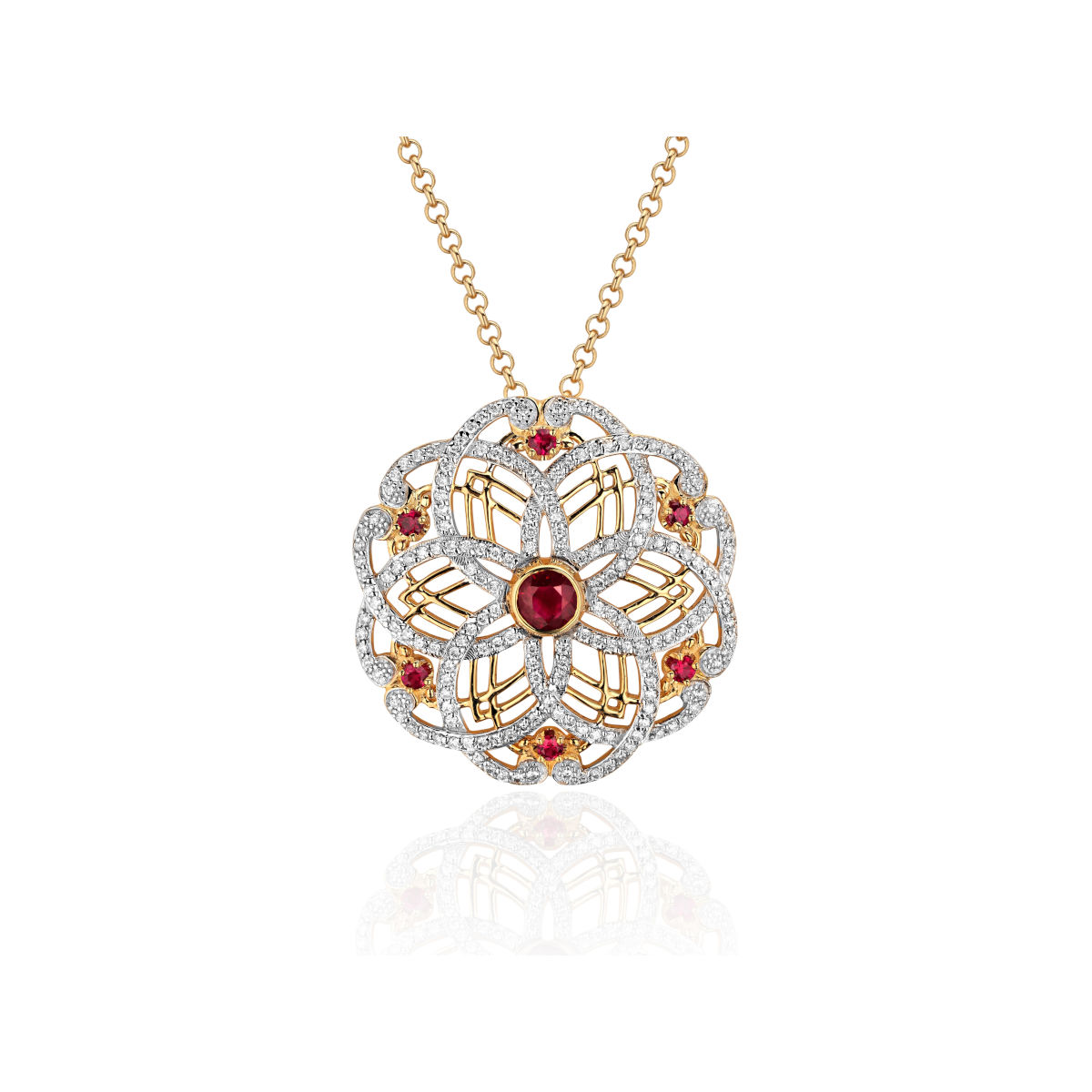 Колье из желтого золота 750 пробы с рубинами и бриллиантами 01Л642060-1