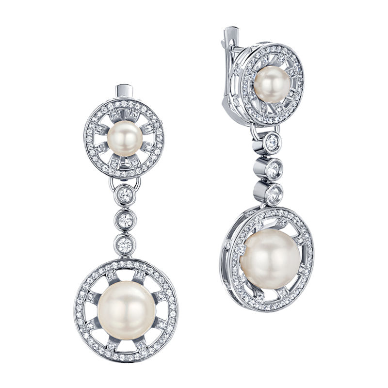 Серьги из белого золота 585 пробы с жемчугом, сапфирами и бриллиантами 01С62123216-1