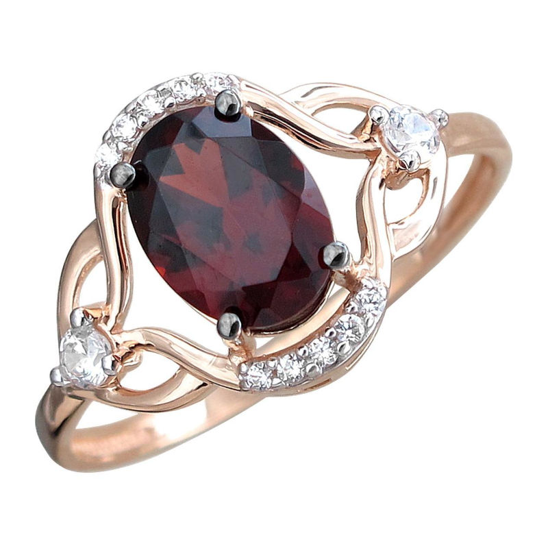 Кольцо из золоченого серебра 925 пробы с фианитами и гранатом 01К3513281РА-1
