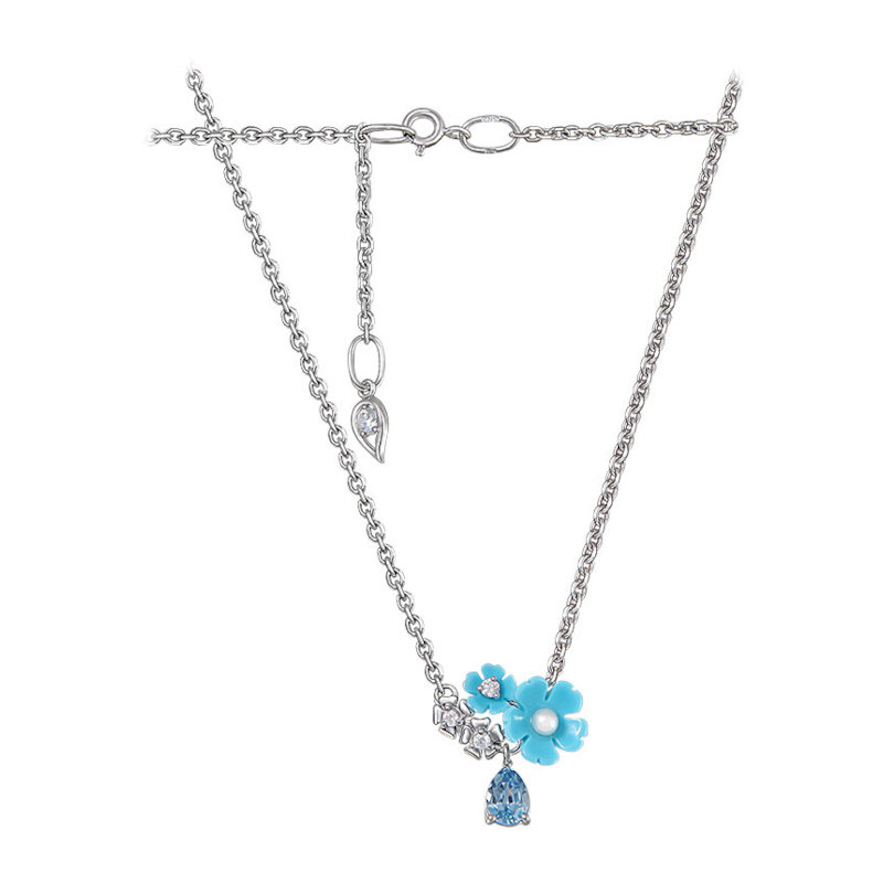 Колье из серебра 925 пробы с фианитами, шпинелью, имитацией бирюзы и жемчугом 01Л351546-1