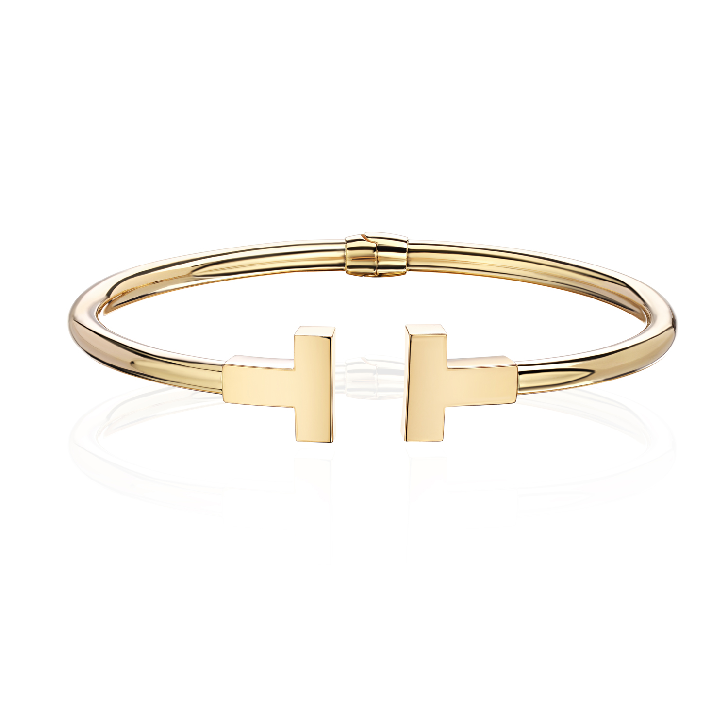 Желтое золото было выбрано не случайно – этот металл олицетворяет тепло, богатство и надежность. Его естественное сияние дарит ощущение роскоши и придает образу особый шарм. Плавные линии браслета акцентируют внимание на его утонченной форме, создавая эффект легкости и изящества.