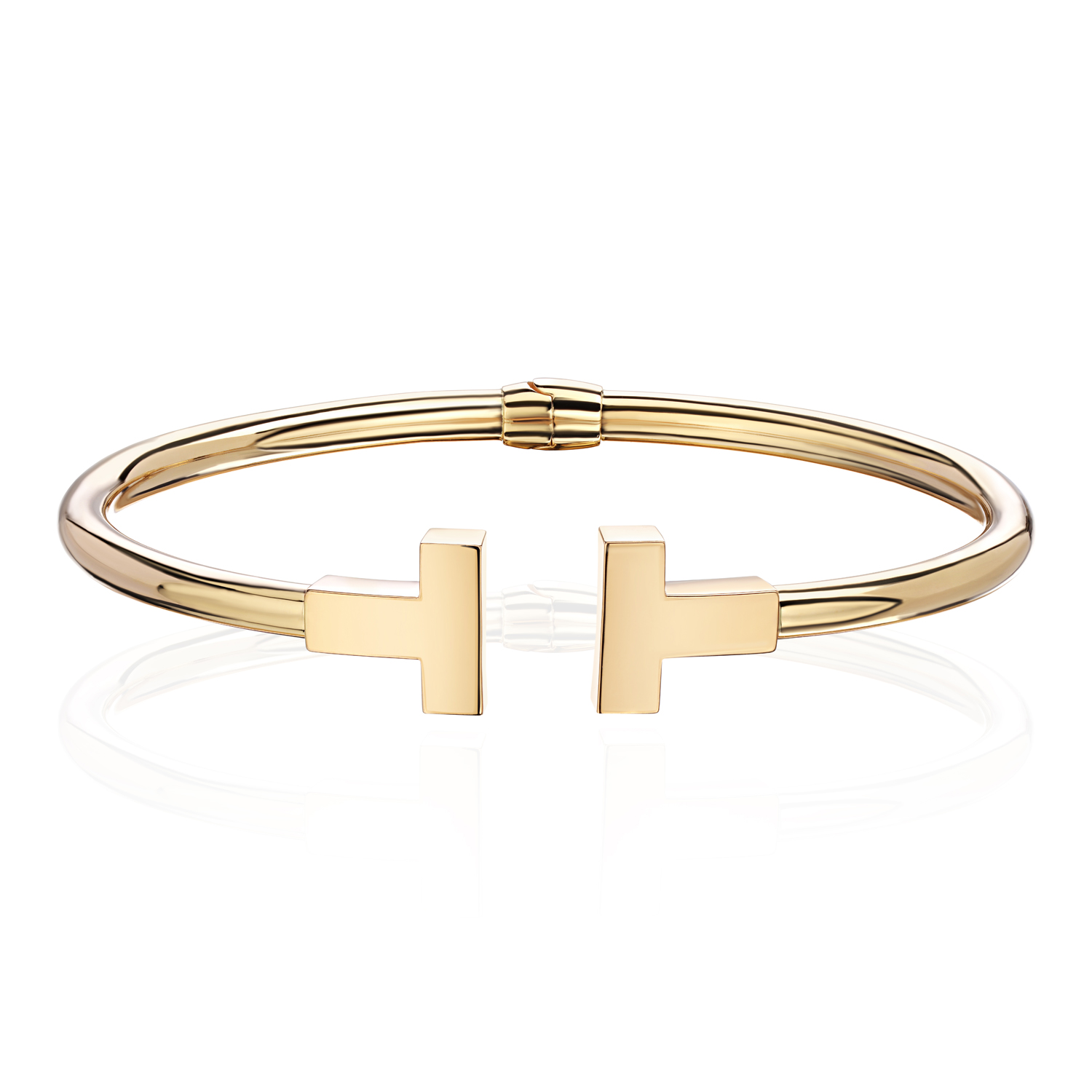Желтое золото было выбрано не случайно – этот металл олицетворяет тепло, богатство и надежность. Его естественное сияние дарит ощущение роскоши и придает образу особый шарм. Плавные линии браслета акцентируют внимание на его утонченной форме, создавая эффект легкости и изящества.