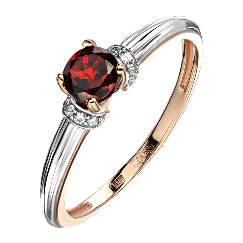 Кольцо из красного золота 585 пробы с гранатом и фианитами 01К3115276Р-2