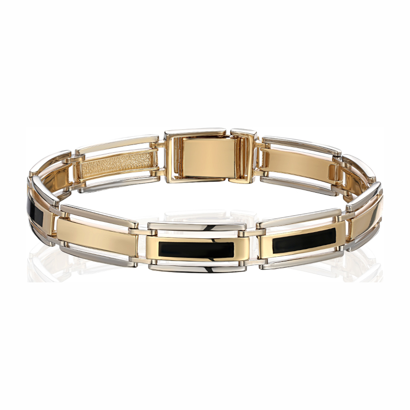 Браслет из комбинированного золота 585 пробы с агатом 01Б460589Ж-1