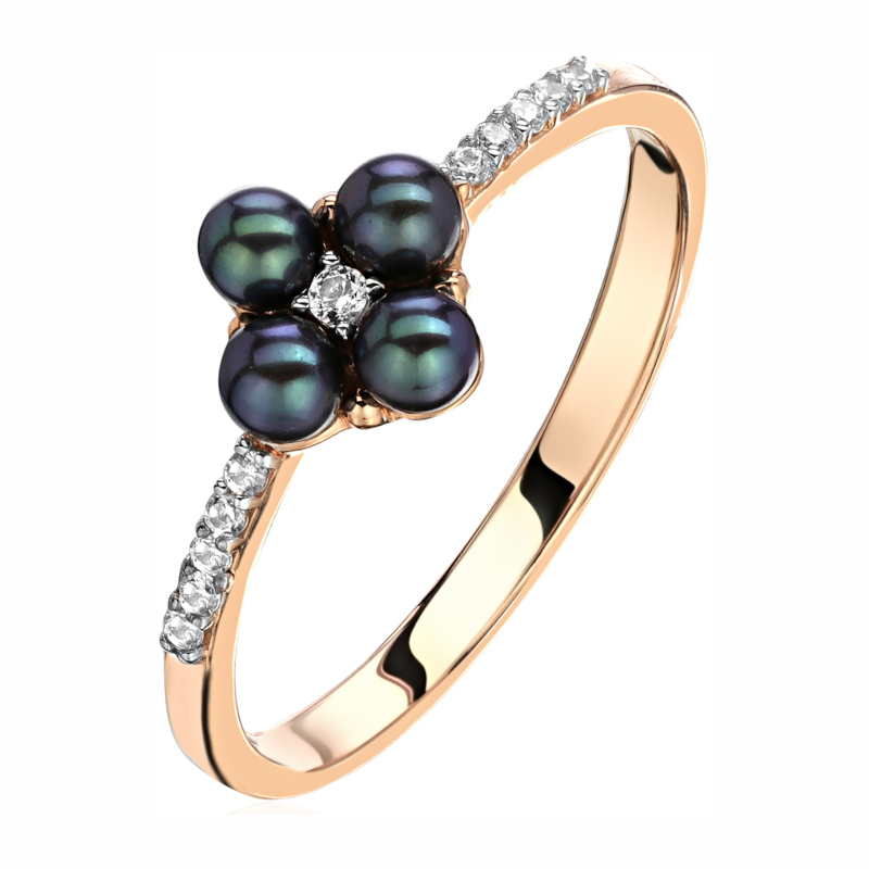 Кольцо из красного золота 585 пробы с фианитами и жемчугом 01К3114284-2