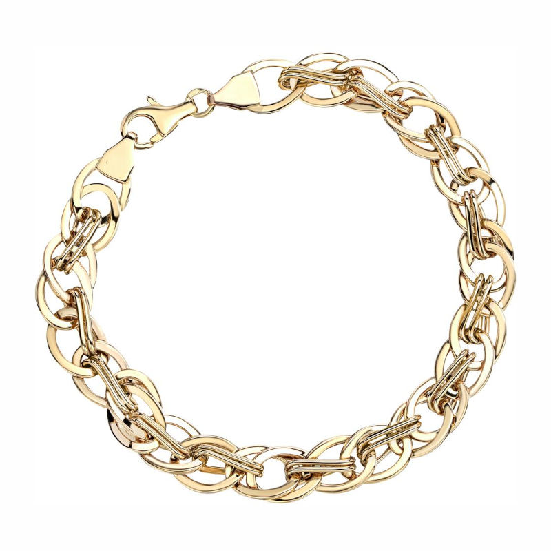 Браслет из желтого золота 585 пробы без вставок из коллекции Fashion - это элегантный и стильный аксессуар, который идеально дополнит любой образ. Мы, Ювелирный дом Эстет, гордимся тем, что являемся производителем этого великолепного изделия. Наши ювелирные украшения приходят к вам в подарочной коробке и бумажном брендированном пакете, что делает их отличным вариантом для подарка.